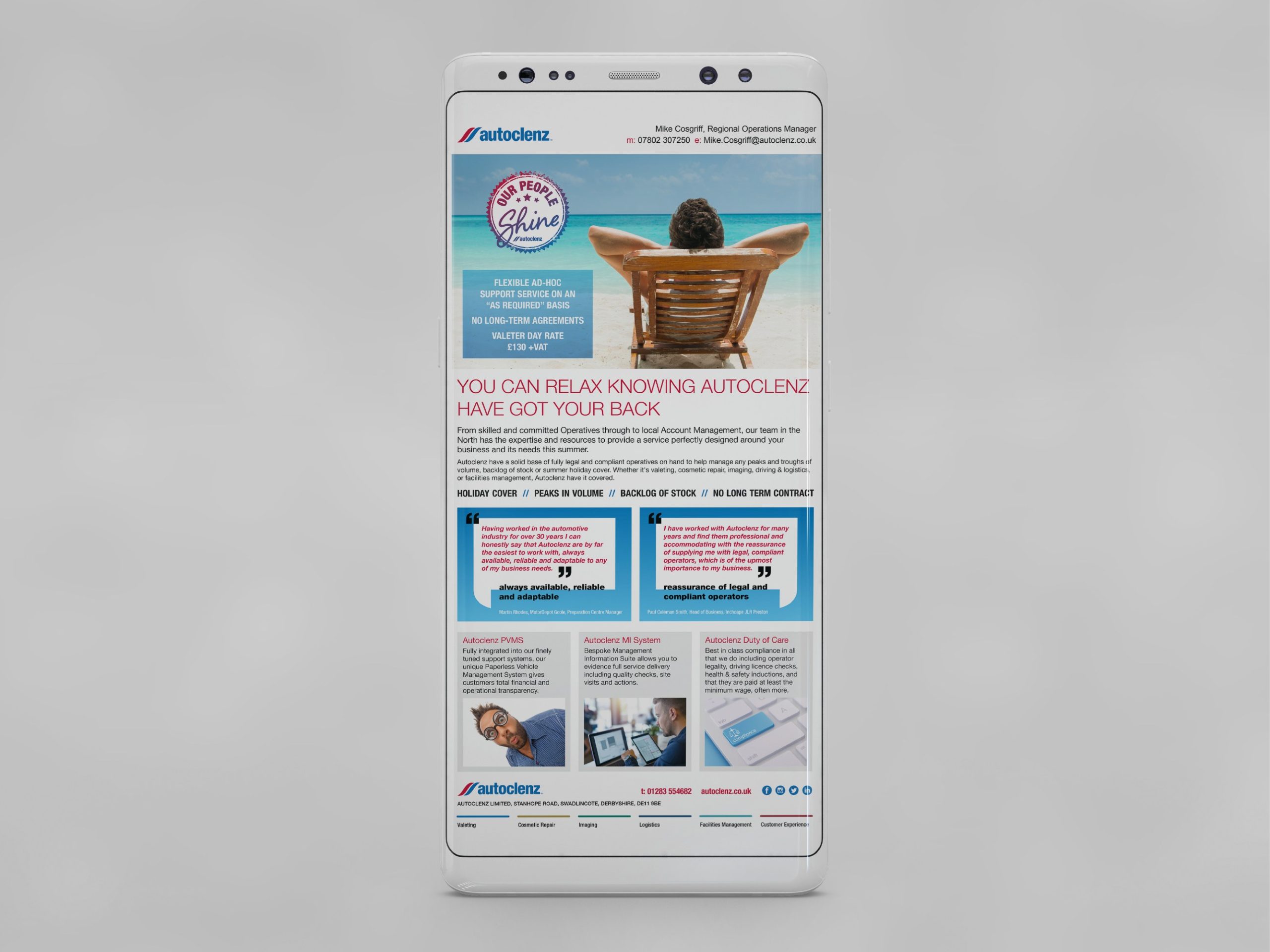 Autoclenz is the leading vehicle preparation company in the UK. Working closely with the in-house marketing department, as part of a wide programme of marketing activities Commence designed and delivered a new website. In addition Commence provide hard working, impactful and creative email campaigns and banner advertisements for both trade and motor press.