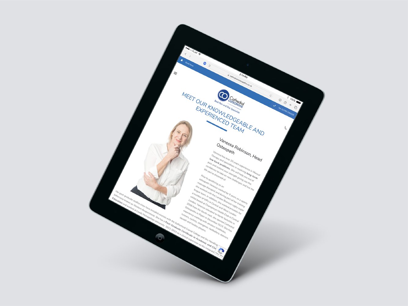 Another local client, based in Ripon opposite the cathedral (hence the name), asked Commence to create a website to market their osteopathy services.
