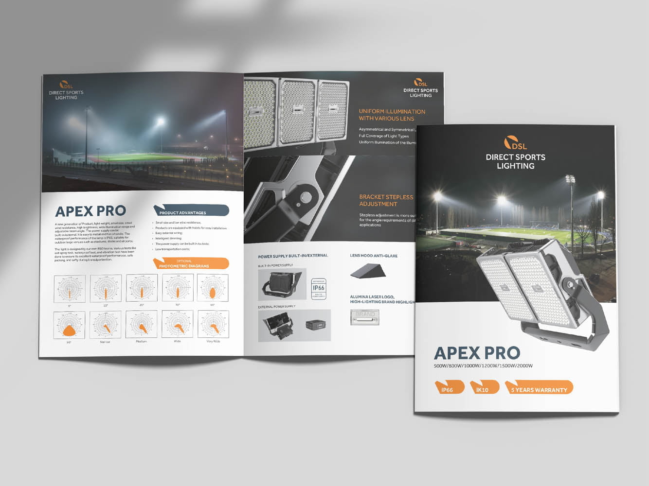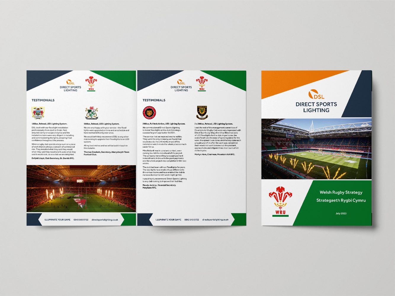 A local client, based in Ripon, Direct Sports Lighting offer high standard sports pitch lighting system design, installation, repair and maintenance. Commence was commissioned to re-design their brand logo and product brochure, as well as create and design their sales and tender proposals, covering different sectors of the business.